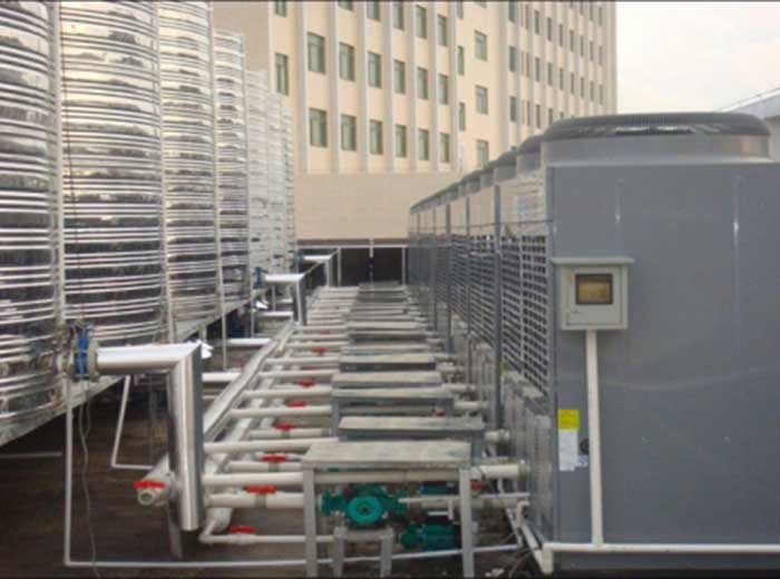 概述:宿舍樓頂為平屋頂時一般把太陽能與空氣源熱泵放置樓頂,采用太陽能與空氣能輔助加熱方式