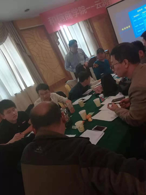 2018年11月3日—4日,云潤(rùn)新能源針對(duì)企業(yè)發(fā)展過程中出現(xiàn)的業(yè)績(jī)瓶頸問題請(qǐng)和信商學(xué)院共同進(jìn)行專項(xiàng)研究培訓(xùn)。該培訓(xùn)共持續(xù)兩天一夜,期間商學(xué)院與云潤(rùn)成員共同梳理業(yè)務(wù)流程、制定考核措施等。