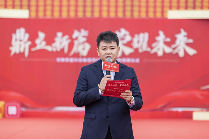zui后,在熱情洋溢的現(xiàn)場氛圍中,河南榮盛科技集團董事長楚科奇發(fā)布了致辭。他首先代表集團向蒞臨現(xiàn)場的各位領導、嘉賓及全體員工表示熱烈歡迎與誠摯感謝。楚總回顧了集團十二年的發(fā)展歷程,指出新材料生產基地的建成,凝聚了全體榮盛人的智慧、汗水與堅守,是企業(yè)十二年奮斗征程上的重要里程碑,更是企業(yè)面向未來、決勝未來的戰(zhàn)略新起點。楚總強調,新工廠的順利落成,得益于各級主管部門的大力支持與服務,也離不開集團管理層的協(xié)同與一線團隊的奮力拼搏。他特別感謝了王海軍總經理及集團管理層,稱贊其在項目戰(zhàn)略定位與資源配置中發(fā)揮的關鍵作用;同時,他也向宋廣林總經理及全體建設者致敬,感謝他們不畏艱辛、全力以赴,將一片荒蕪之地打造為現(xiàn)代化智能工廠。