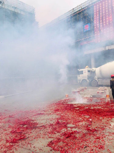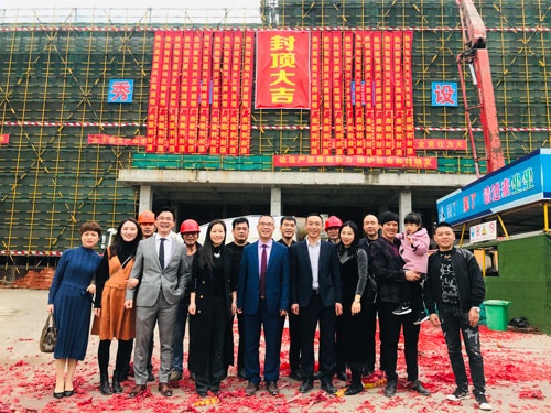 總裁朱長春攜各部門領導及員工歡集新廠房,參加結頂慶典,并一同見證了這一歷史性時刻。