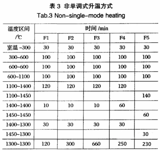 由以上分析可以看出,非單調(diào)式升溫方法有可能在耗時更短、耗能更小的情況下達(dá)到更高的莫來石轉(zhuǎn)化率。而采用非單調(diào)升溫方式處理后的合成料在顯微結(jié)構(gòu)上及其他性能特點上有何獨特之處值得后續(xù)工作進(jìn)行深入研究。