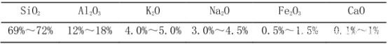閉孔珍珠巖是選用天然珍珠巖礦經(jīng)過(guò)一系列復(fù)雜工藝制得,其工藝過(guò)程:珍珠巖原礦→粉碎篩選成珍珠巖礦砂→預(yù)熱→多級(jí)加熱→膨脹?;?rarr;冷卻處理→成品。其主要成分如表1。